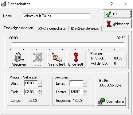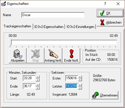 13002 auf 163299. Die Zahl des Endframes von Track 12.