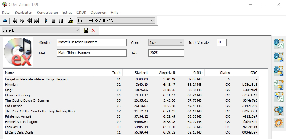 wird über den 2. Button rechts von oben gestartet: CD Tracks(s) nach