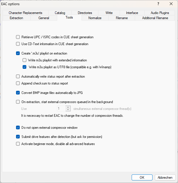 Reiter "EAC options -> Directories" gesetzt. Ich setze ihn auf