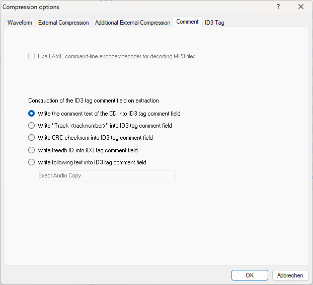 Encoder (LAME 3.100.1) ich verwende zum Rippen.