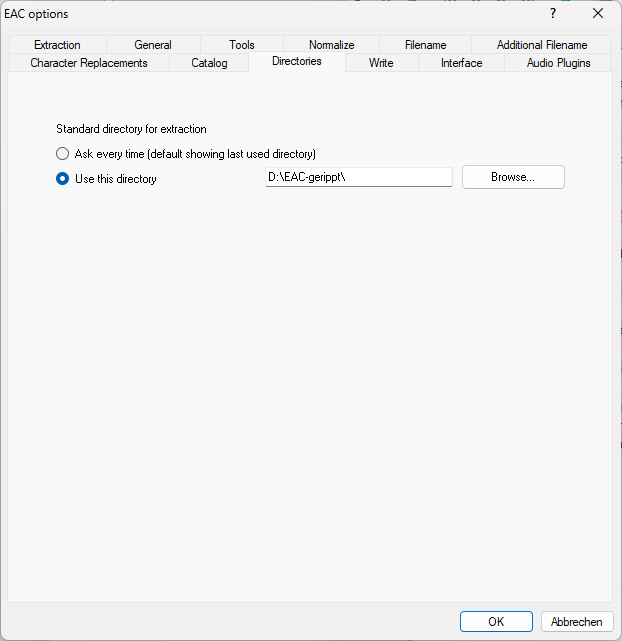 Reiter "EAC options -> Directories" gesetzt. Ich setze ihn auf