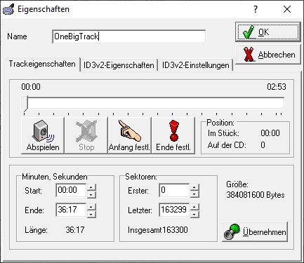 13002 auf 163299. Die Zahl des Endframes von Track 12.