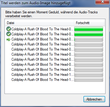 CDBurnerXP beginnt, die MP3-Files in ein auf Audio-CD