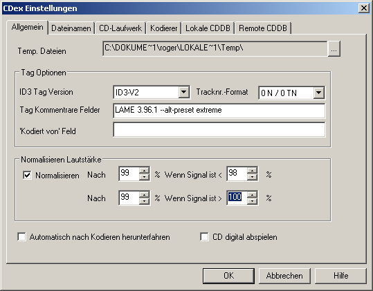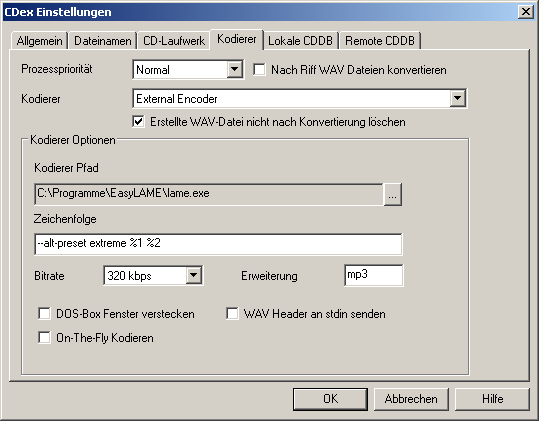 ich mit den codierten MP3-Files zufrieden bin. Alternativ
