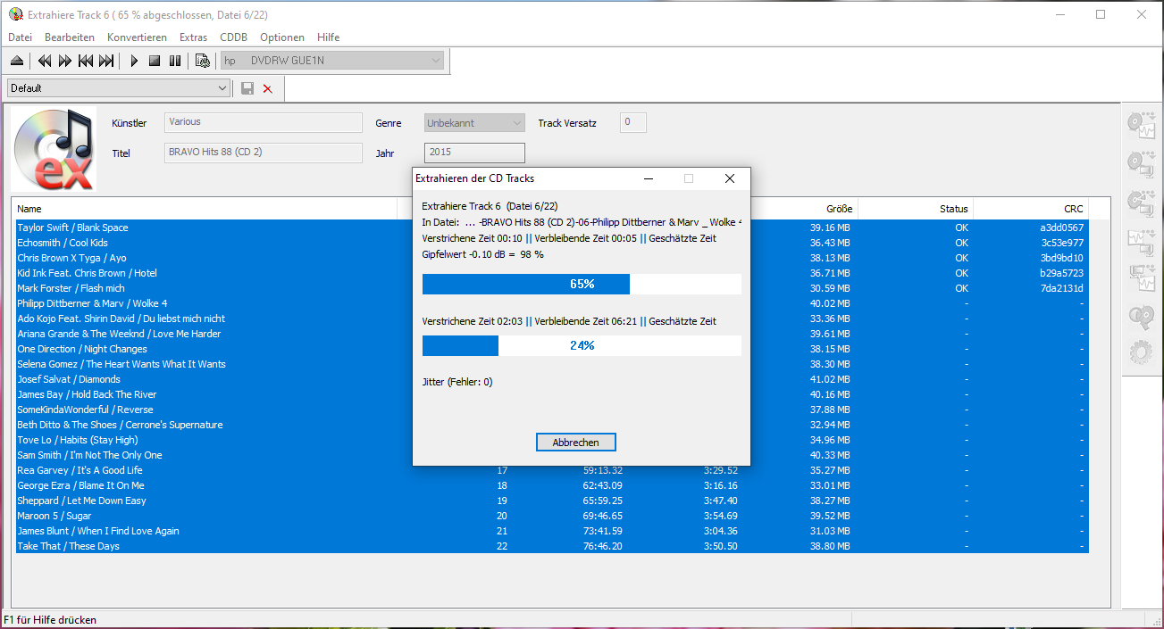 Name des Albums, im Beispiel BRAVO Hits 88 (CD 1)