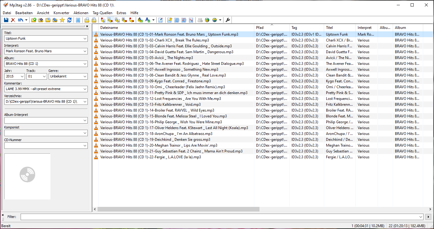 für das Rippen von Sampler-Alben mit MP3 Tag 2.86 (funktioniert
