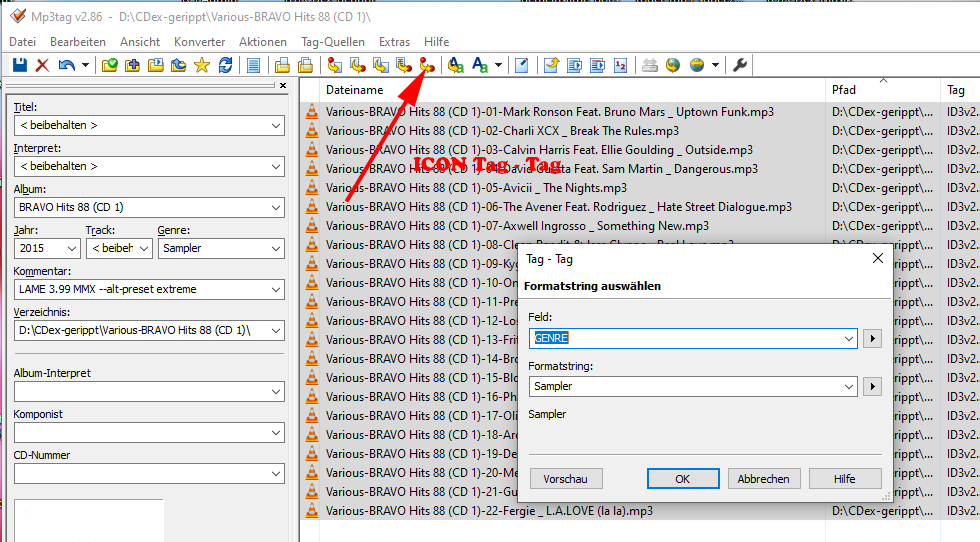 dann noch das Genre auf "Sampler" an, auch dafür bietet MP3Tag eine